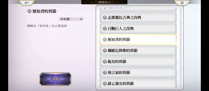 用付费雷池三次十连和一次免费十连攒了10000无知者星痕换来的一本异节以及终镜两本异节,还有圆玉换的两本异节终于成功转职,昨天还坑掉了我一个无知者水滴,剩下的免费石还有9000,代价巨大,如果不是我运气好在幻璃镜遇见了两次诗人,一次是终镜,一次是出口恐怕我还要很久的时间。