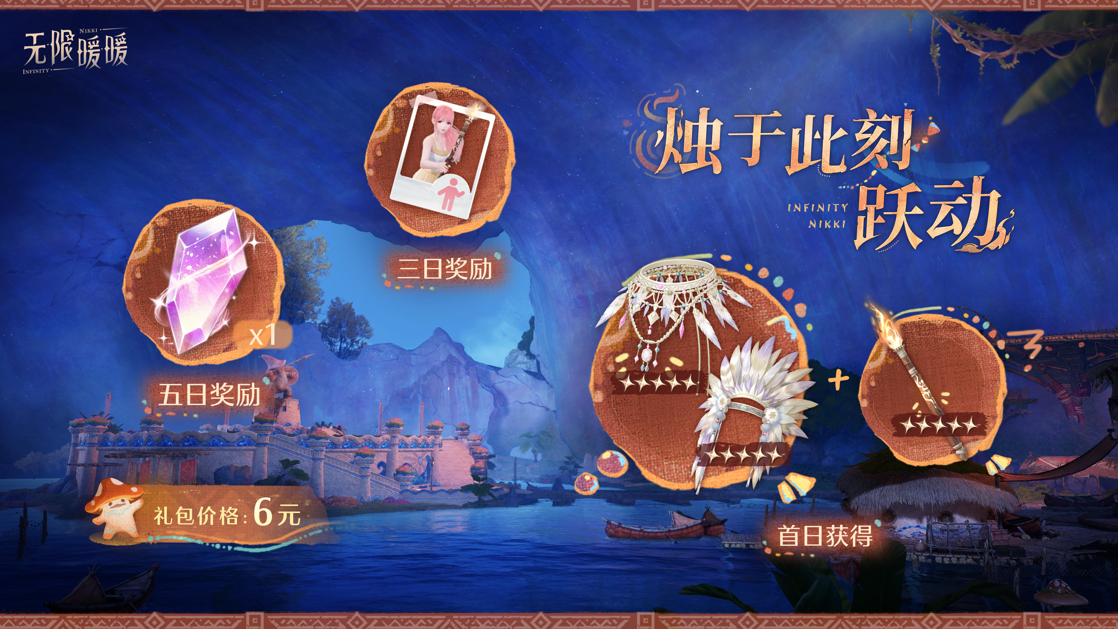 花费6元购买即可解锁【烛于此刻跃动】,解锁后将根据当前活动内累计登录天数,自动开放已累计天数的对应奖励。若此时已累计登录满5天,即可一次性领取全部奖励!
