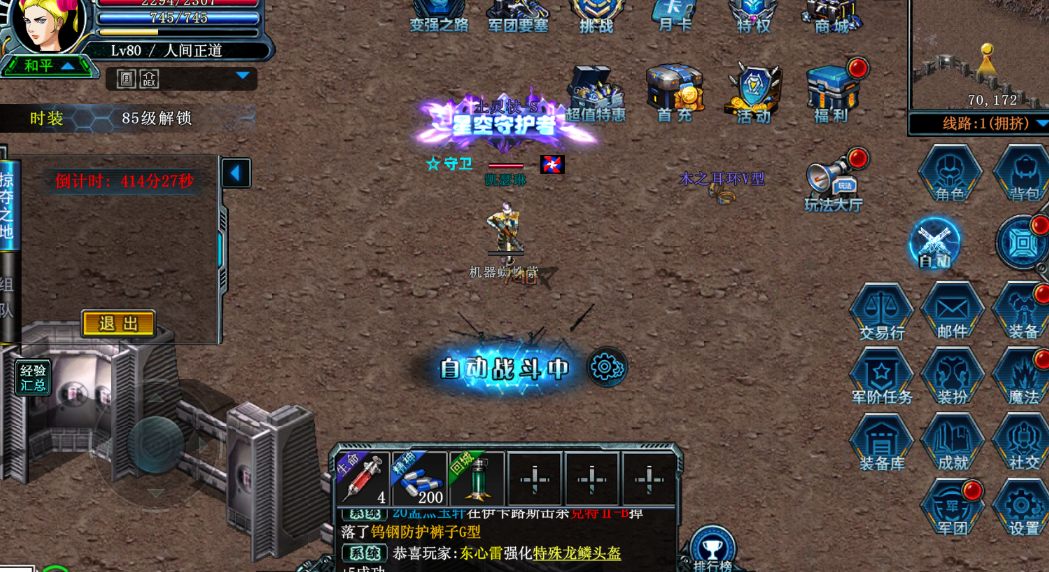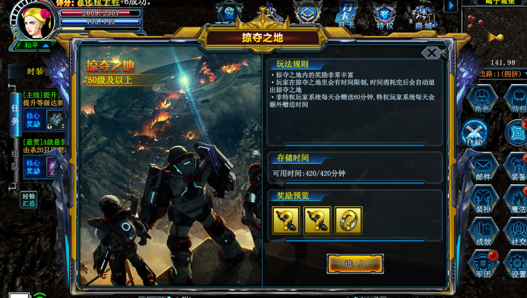非特权玩家每天可以获得60分钟的挑战时间,最多可储存420分钟,时间耗完后会自动退出掠夺之地