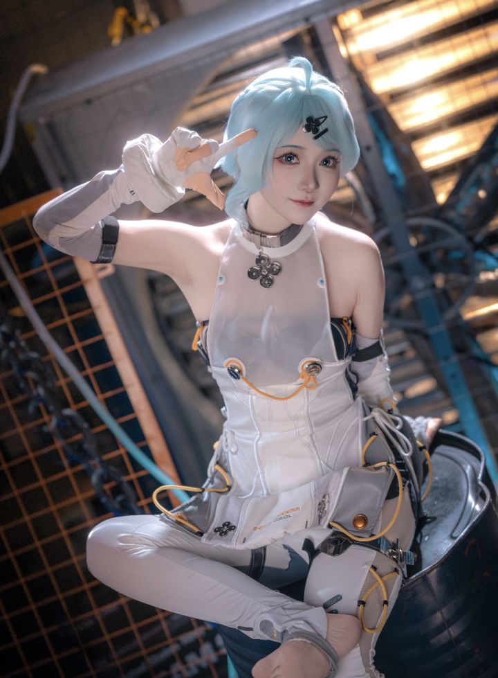 这组cos也太会拿捏感觉了!浅蓝发色衬得气质又灵又甜,眼尾的细节妆直接把角色的娇俏感焊在脸上~服装质感绝了,透明面料的轻盈、金属扣的冷硬、橙黄走线的点缀,把科技感和柔美平衡得刚好,连手套上的小配件都精致到戳心。搭配赛博风布景的冷光,整个人像从未来世界里跳出来的小精灵,甜而不腻还自带灵动气场,每一帧都美到想存图!