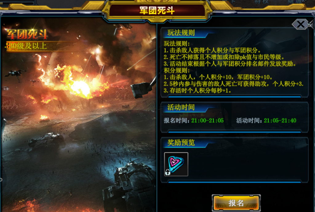 4、活动完毕后,将根据个人积分排行和军团排行发放奖励