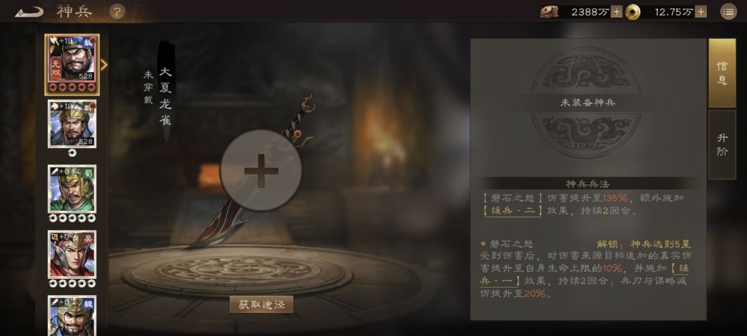 然后是守护技能,取消了裸衣扣自己防御的机制(这个确实有毒……)改成了同时为双方增加50%的兵刃减伤,同时取消了分摊伤害的机制(友军:说好的掩护我呢?),改为将5星神兵的反伤特效前置至该技能(当然5星神兵原效果未变),强化了一下许褚的输出能力,也就是当许褚拥有5星神兵且守护对象被打到,可以一次性扣20%许褚最大生命值的血量