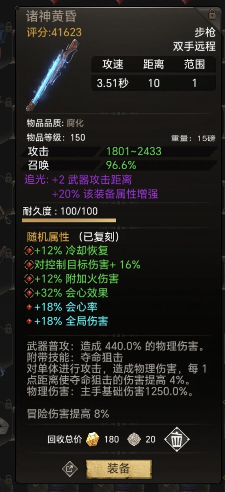 神器的话因为华纳词条太难凑了,截的原来赛季里面的,如果是苍白的话就是冰属性伤害,黑猫或者双树枝就是物理伤害。神器威能因为要走12码需要击退,所以必带泪痕,其他一个可以带上高加伤的就行,其他属性参考,觉得那条可以优化的可以讨论下。