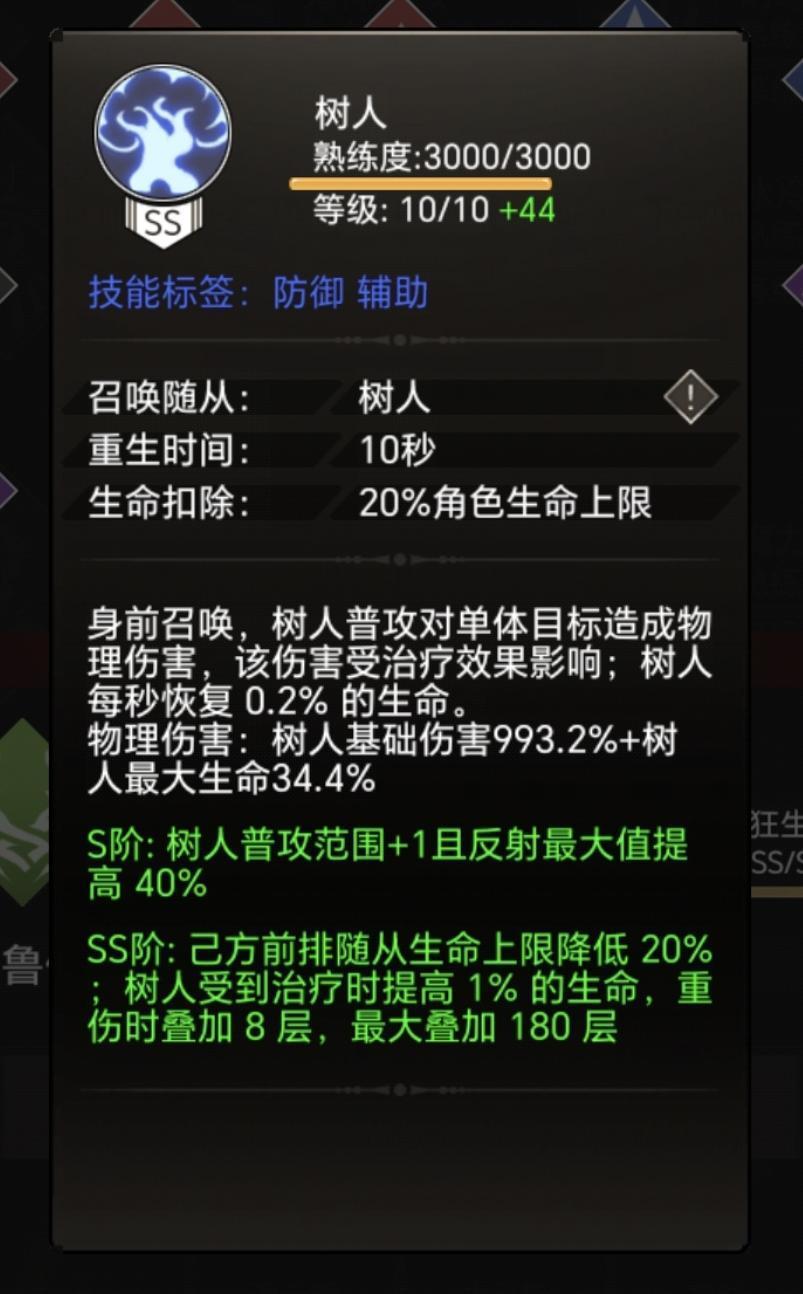 树人这个随从普攻吃生命 不带异常吃附加和攻击伤害,ss级受到回复就能提升最大血量一共能提升180%。