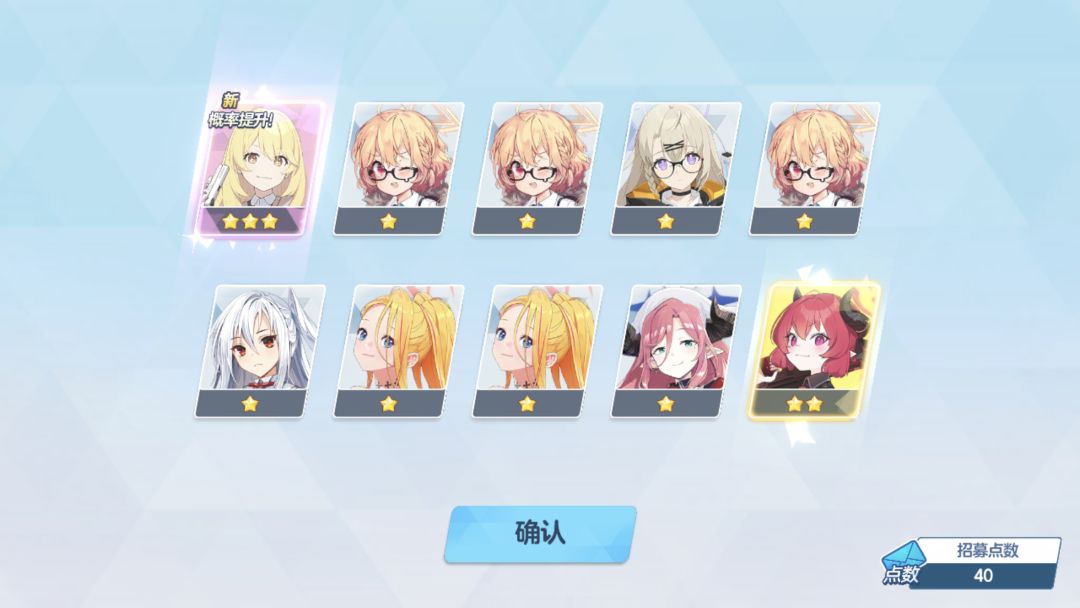 20号回坑后我只有800多石头,然后领了2张十连券,就直接20抽就拿下了美琴,还歪了一个紫