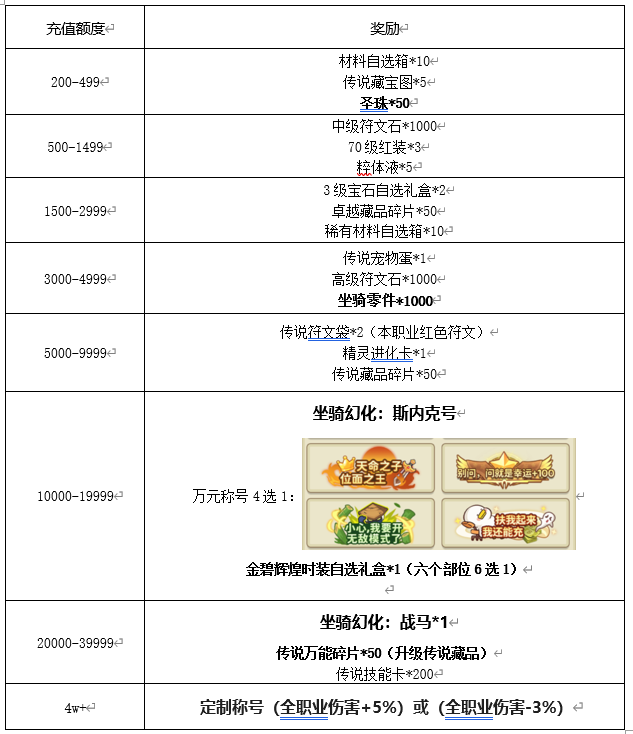第三阶段:【周年累充福利】可获得相应奖励以及低档位所有奖励