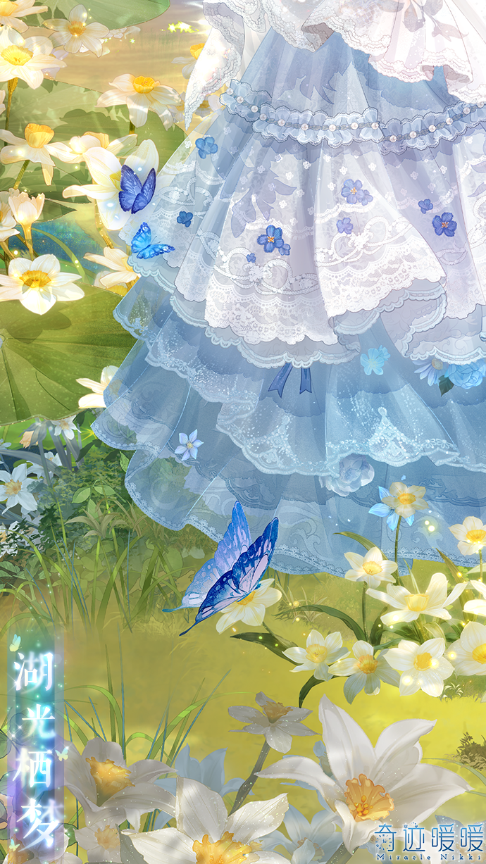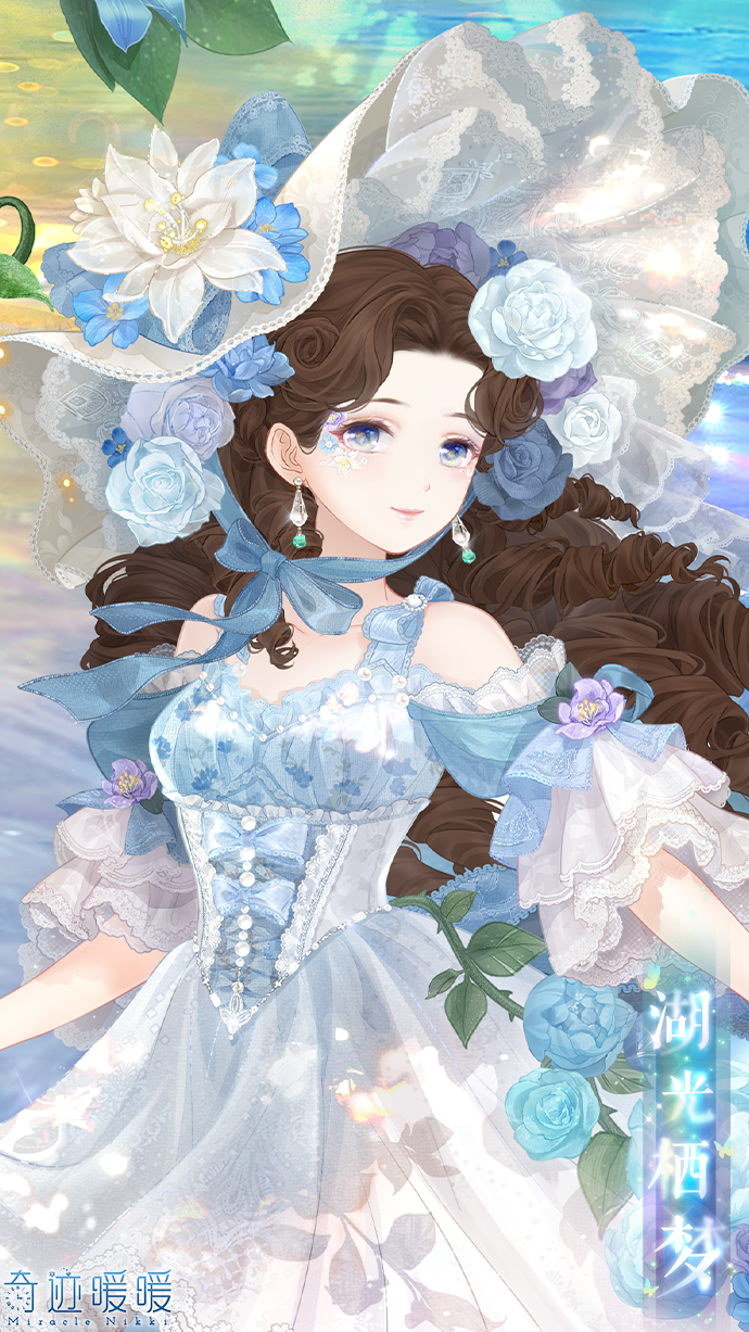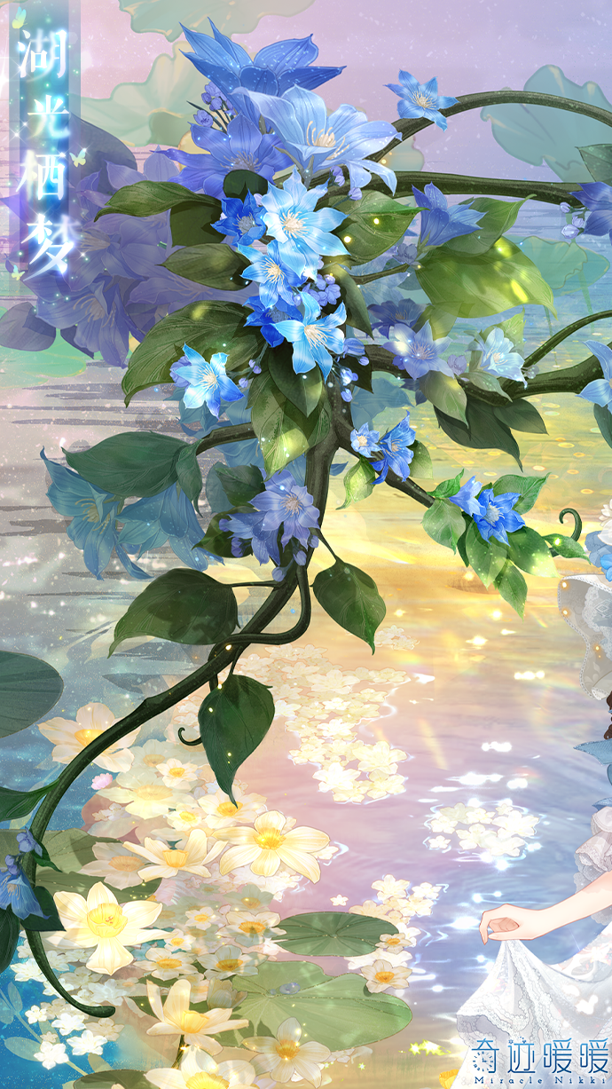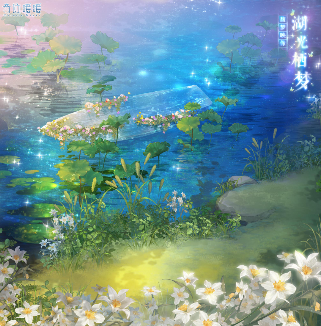 【湖光栖梦】含全新妆容“拾忆欢颜”,精美面饰“心花知梦”,蝶舞特效连衣裙“湖光栖梦”,动态摆件“白羽衔诗”、“栖花秘境”、“萦梦湖畔”,精美特效摆件“摇曳繁花”,动态胸饰“馥花纷飞”。