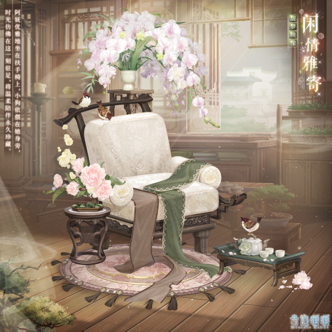 【闲情雅寄】含正常姿势与特殊姿势,全新妆容“馥馨欢颜”,精美可移动摆件“岁隐花时”、“优雅旧忆”、“循古格调”、“暖室生香”。
