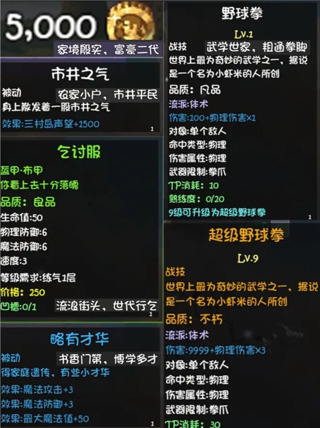 武学世家,粗通拳脚(获得野球拳,前期过渡的核心→9999+物理攻击✖️3,前期一拳一个小朋友,新手村拳王)