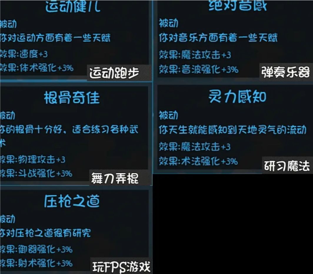 因为我们玩的是魔法四院,所以这里我们选择灵力感知(增加魔法攻击和术法强化)