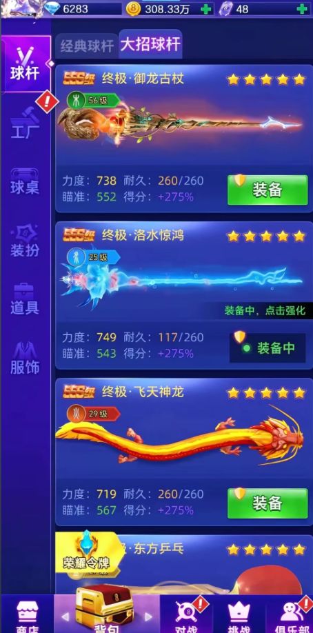 球杆挑选:新手可通过球杆寻宝、荣耀商城获取绿绮雀灵、碧玉冷焰等经典球杆,它们满级力度均超 730,瞄准属性也不错,适配多数常规场景;国庆活动推出的龙耀盛世球杆,满级力度 720、瞄准 566,若有返场活动可优先入手,助力提升对战优势。
