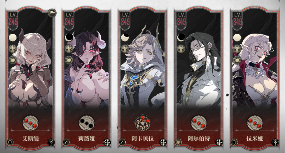 在队伍构建方面,建议优先凑齐3人黑夜告奉。除了艾斯缇、莉薇娅以外,第三位眷属可以选择拉米娅、达尔卡罗、莉米姆(任选一位);队伍中的阿卡贝拉可提升回费效率,并且有法术增伤、暴击率提升效果;阿尔伯特可给目标施加易伤,进一步提高输出。