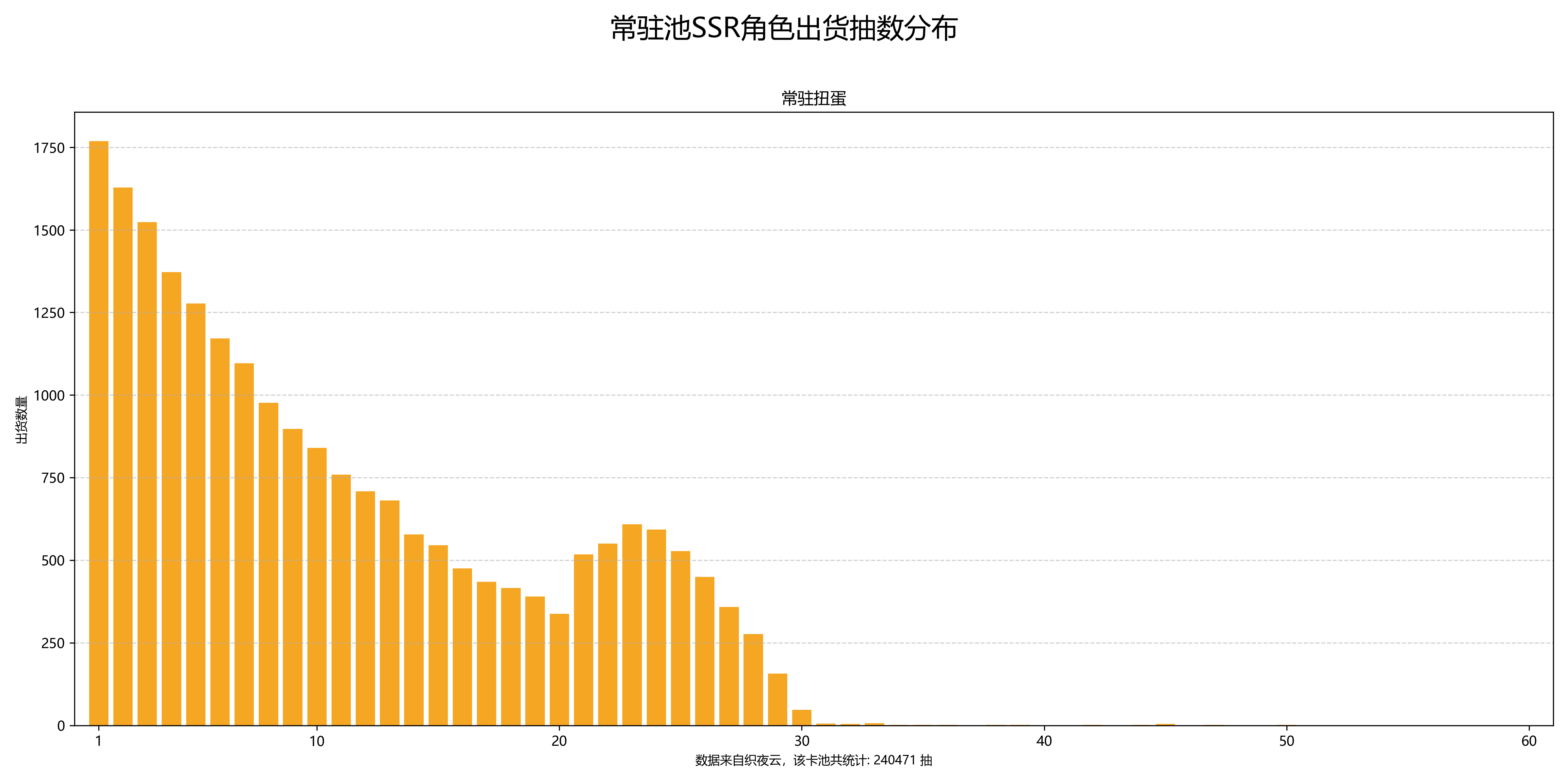 对于高级常驻池,概率和限定池在理论上来说是一模一样的。但是在织夜工具箱的统计数据里,60抽出货的概率异常的高
