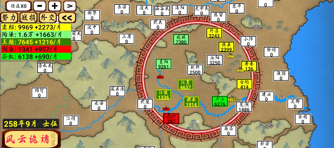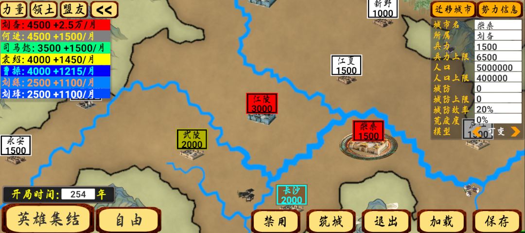 - 镜花水月:势力随机分布,且城市属性全随机