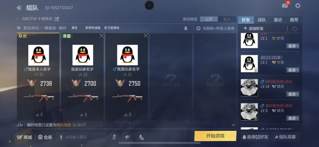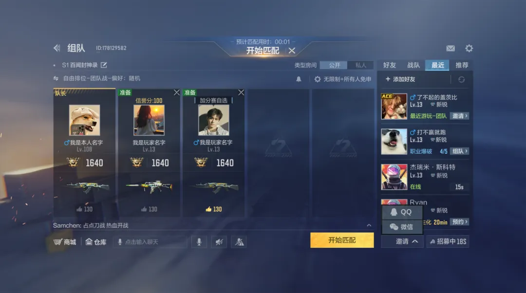 在新版本中,你只需在匹配界面点击右下角的“邀请”按钮,即可直接邀请QQ/微信好友加入队伍,快速开启房间游戏或参与匹配,组队体验更便捷、更自由。