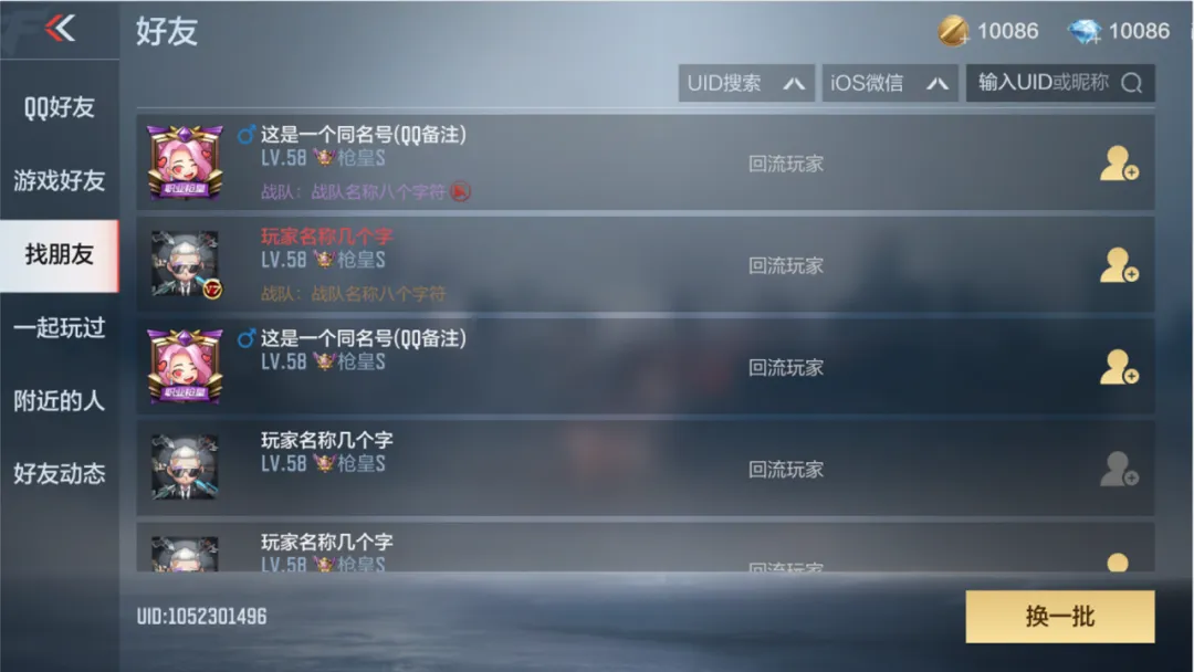 其他场景下,如:找朋友、一起玩过、附近的人等,都可以进行跨服添加好友,并且在找朋友界面新增了区服筛选功能,操作更加便捷。