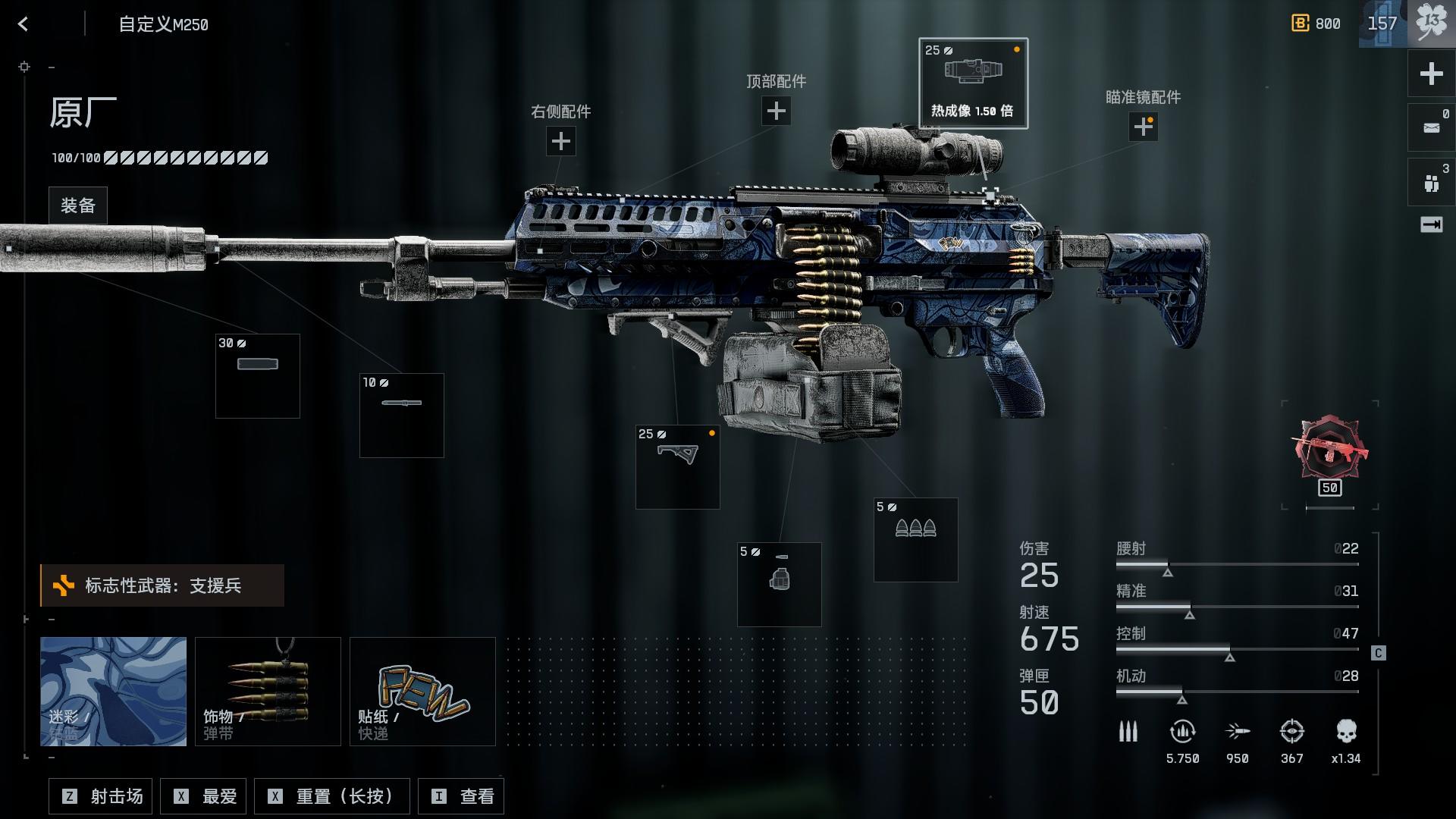 很纠结要不要给这把枪排t1,但是最后还是觉得应该排在t2,虽然说对外来看数字确实是够大的但是在机枪这个武器池里面确实相对于m250和kts他的竞争力没有那么强,子弹太慢导致我觉得他不适合新手使用。