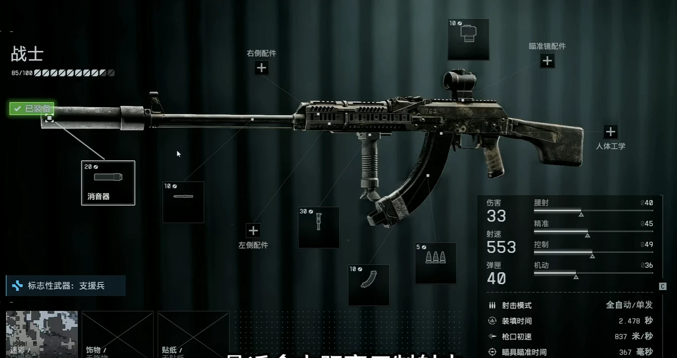 志愿兵带上就是pro突击兵!数值说高也不算高,但是一把非常有趣的武器,他即可当步枪改枪,也可以像机枪那样改枪,非常值得战地老登尝试一下。