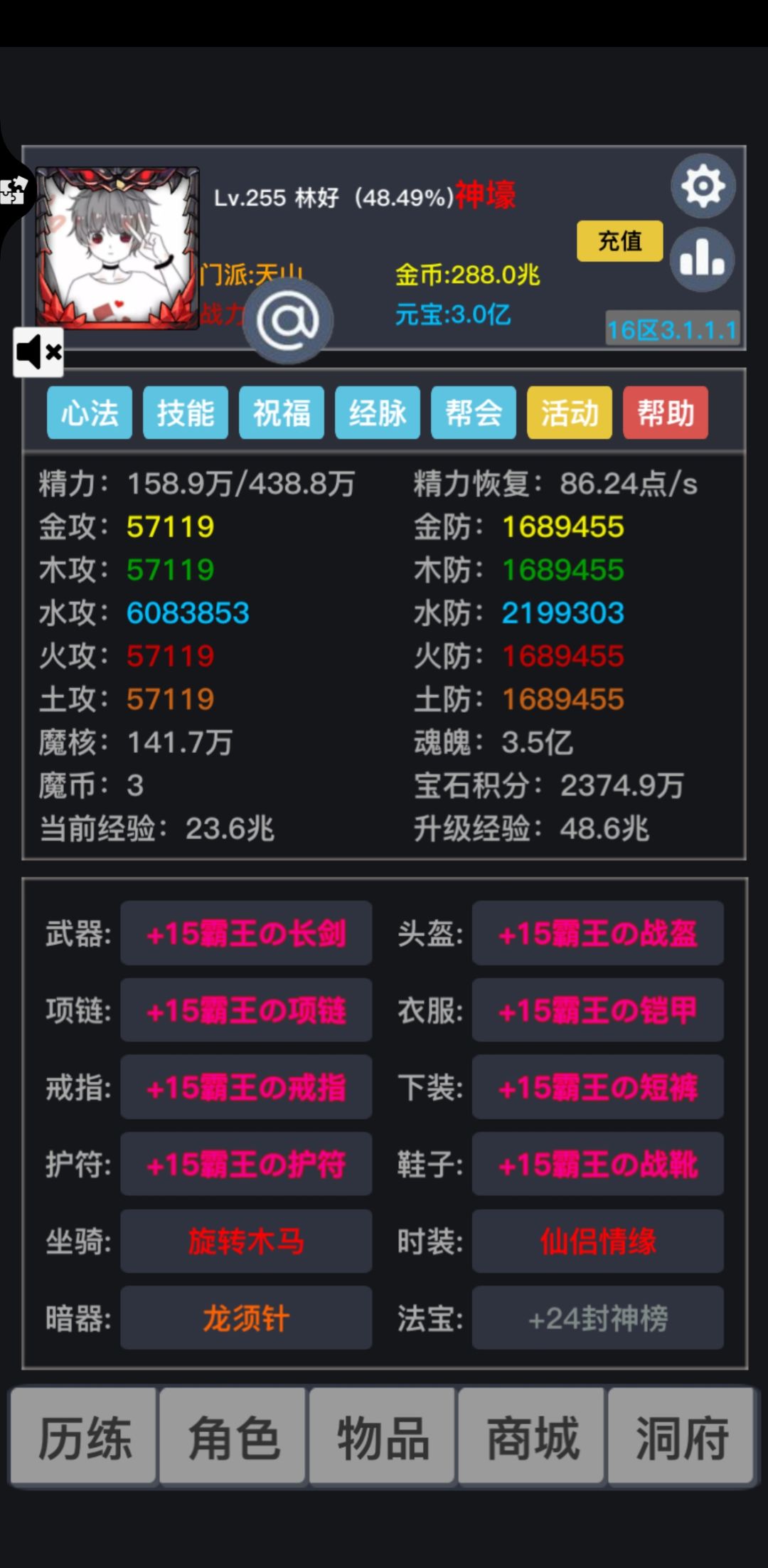 255后,节奏慢下来了,20天签到进外域,每天打打外域,获得点魔币,正常突破就行了。当然,如果你是双神豪,或者三神豪,当我没说,几百亿起步的战力,想想还真是……爽完之后索然无味。
