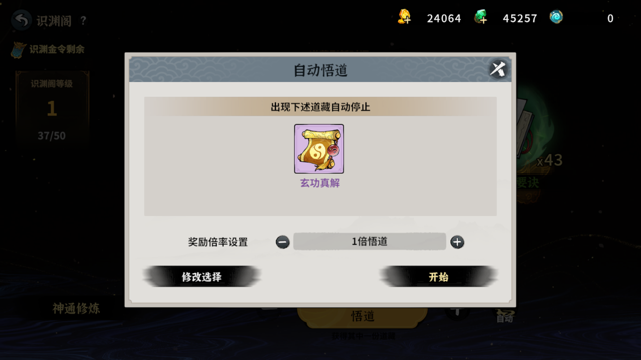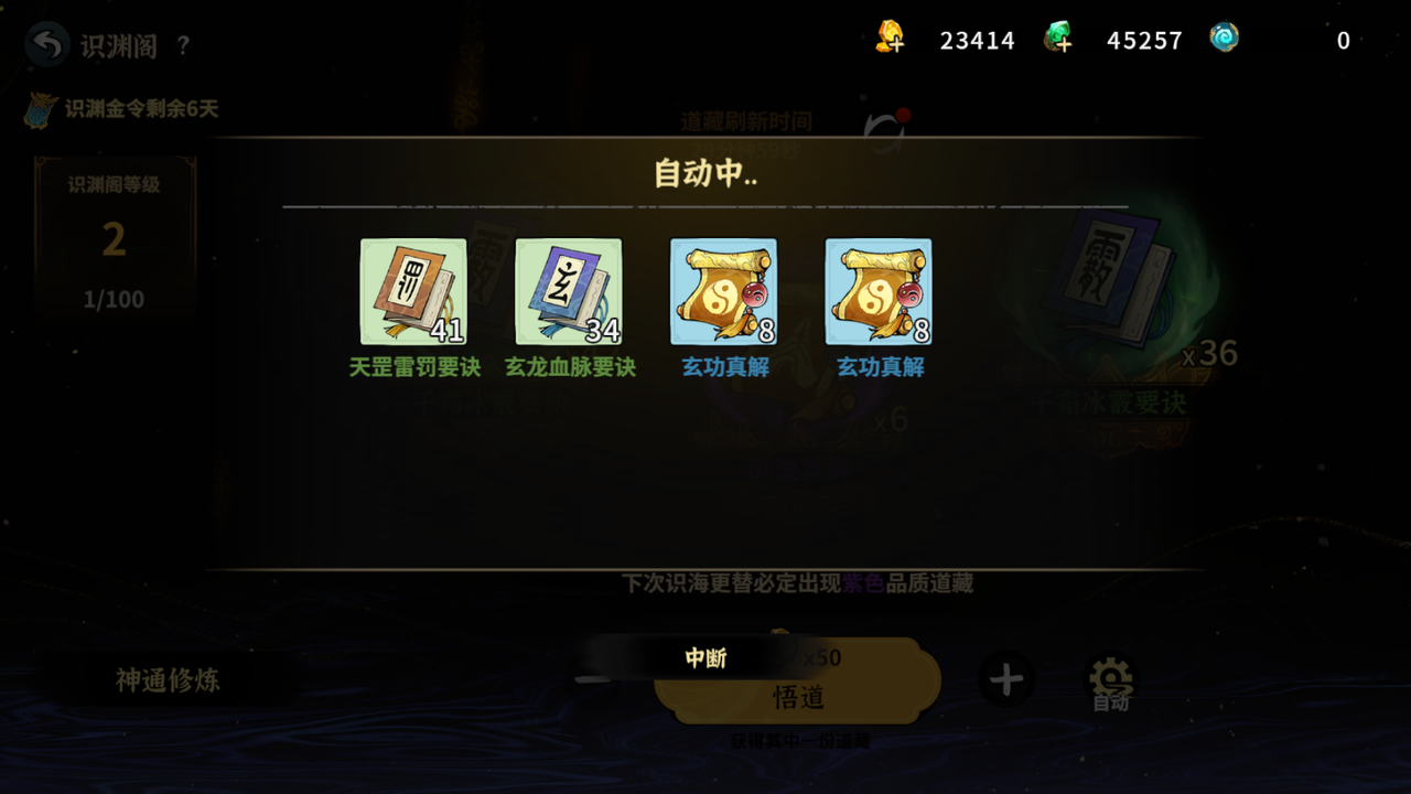 识渊阁等级越高,道藏中出现高品质真解的概率越大。可于界面查看详细概率表。