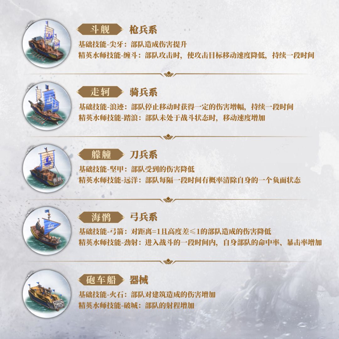 同时,君主还可以训练精英水师并将其分配给将领,若部队中编有精英水师,则船只将激活额外的技能效果,为君主的海上征程增添强大助力。