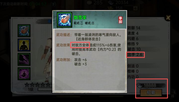 【资质】增加资质可以增加功法学习数量,选择1.6起步的侠客