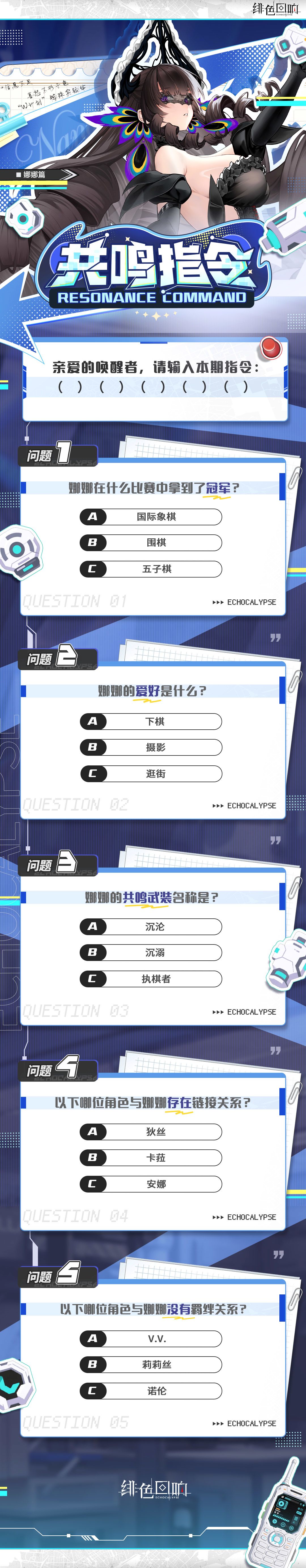 亲爱的唤醒者,全新MR共鸣者「娜娜」现已上线!这位来自奥古斯都圣国的国际象棋棋士,大家对她是否已经有一定了解了呢?现有5条关于「娜娜」的初级情报线索等待破解,快来留下你的指令答案吧~