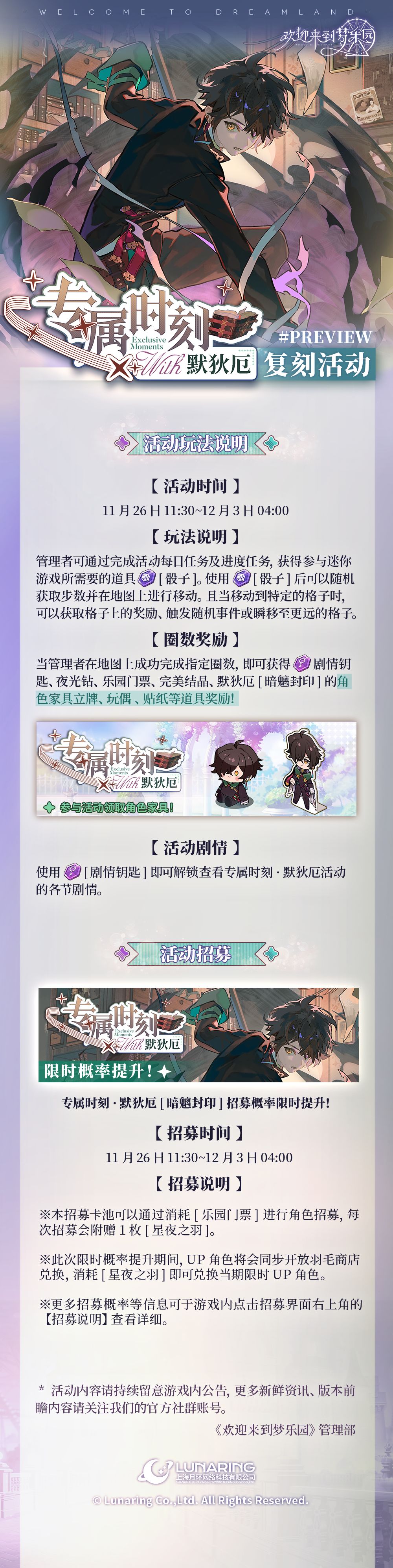 全新复刻活动「专属时刻·默狄厄」11月26日开启!