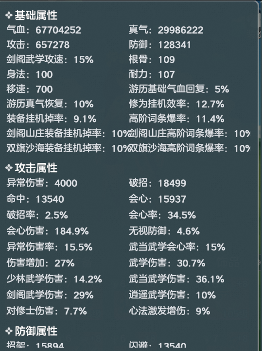 1、基础属性:气血、真气、攻击、防御、挂机效率、装备掉率等