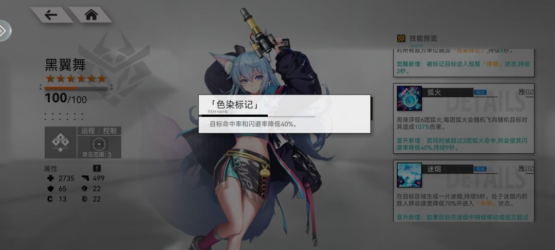 up角色,闪避流核心,目前主线的怪的命中率都不高,普攻减50%命中率,大招40%闪避率,被动减70%命中率,再加上闪避的装备基本上可以做到不吃伤害,特别适合喜欢凹极限的玩家。