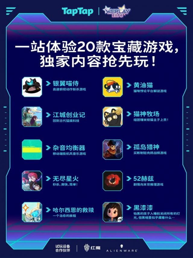 以及11月23日tap所宣布的20款weplay上的游戏试玩(其中背包乱斗,小小梦魇,猫神牧场和哈尔西恩的救赎都是有版号的)