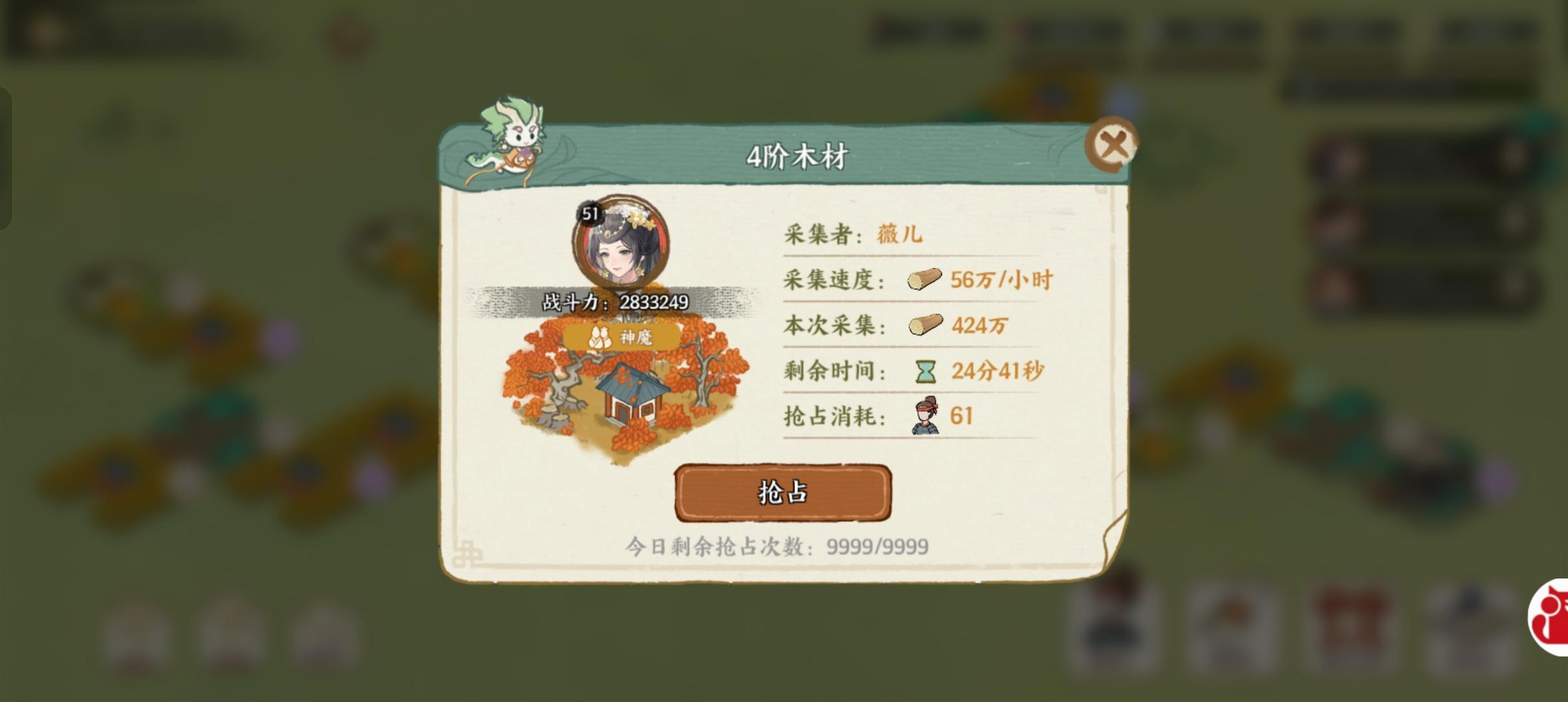 和龟甲采集一样,不要提前收取,损失太多了,只要不被抢还是采集完了合算