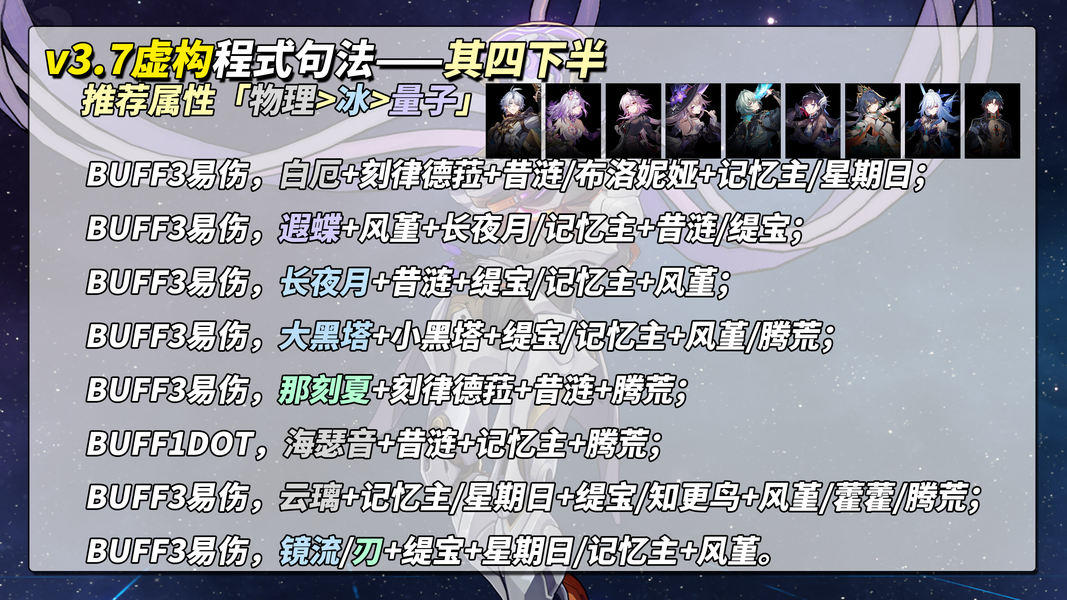 BUFF3易伤,长夜月+昔涟+缇宝/记忆主+风堇;