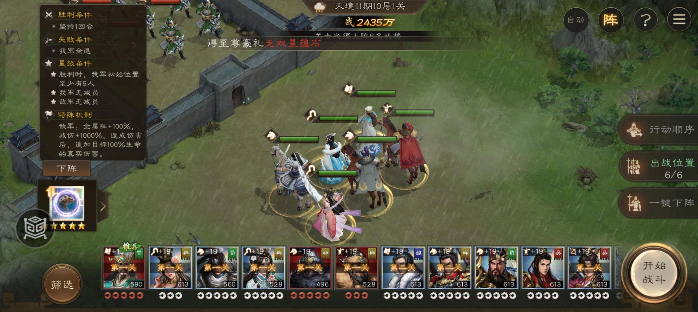 本关条件,敌人基本无敌而且一击必杀,星级条件是敌我都未减员且我方初始位置至少5人