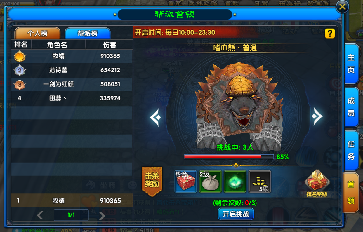 - 首领挑战技巧:世界首领建议 12:00 准时参与,提前备好回血道具,专注输出保排名;野外 / 地宫首领关注后设闹钟,组队前往(2 输出 + 1 坦克 + 1 医师),避免中途死亡清空归属;