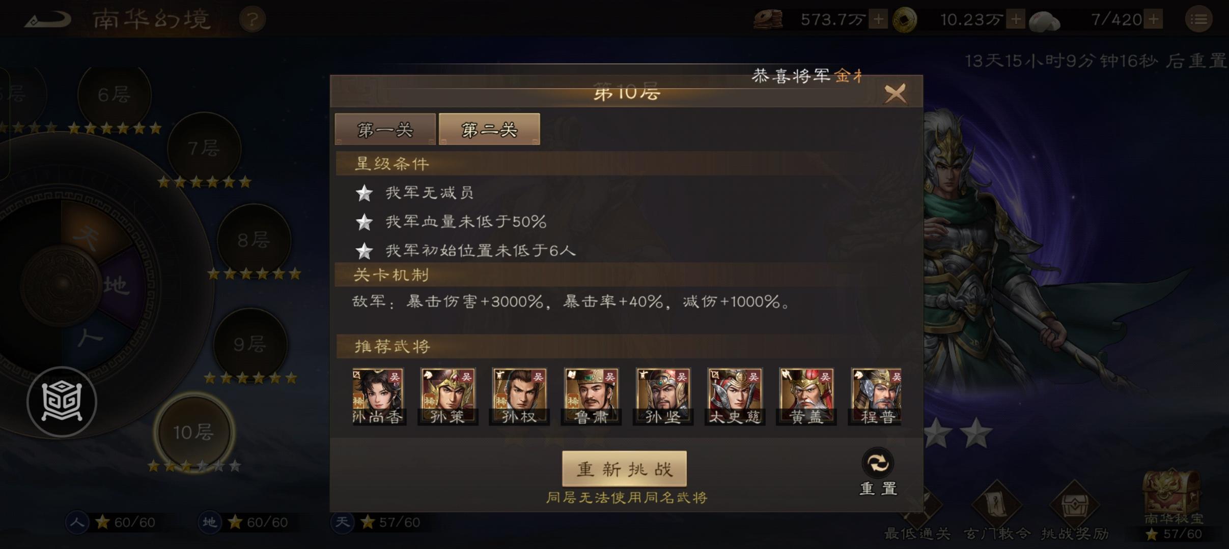 条件是坚守2回合,而敌人爆伤超高,又有40%暴击率加成,所以这关非常拼运气...