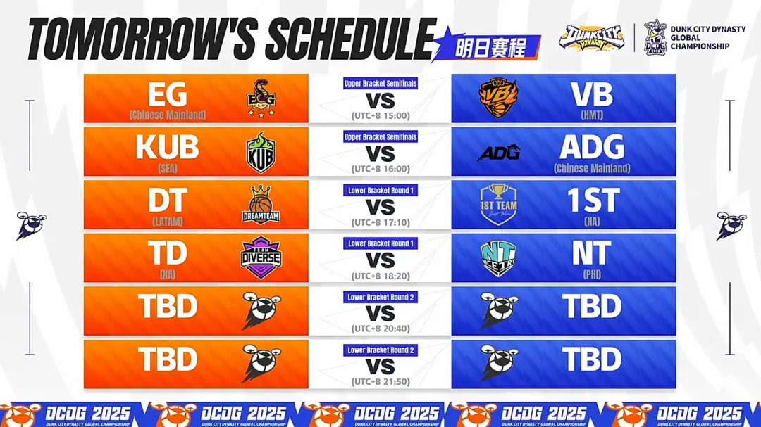 赛程预告震撼来袭,胜者组EG迎战VB、KUB对战ADG;败者组DT碰上1ST、TD对上NT。明天残酷的淘汰仍将继续,究竟哪些队伍能挺进第三日的最终决赛?让我们拭目以待!