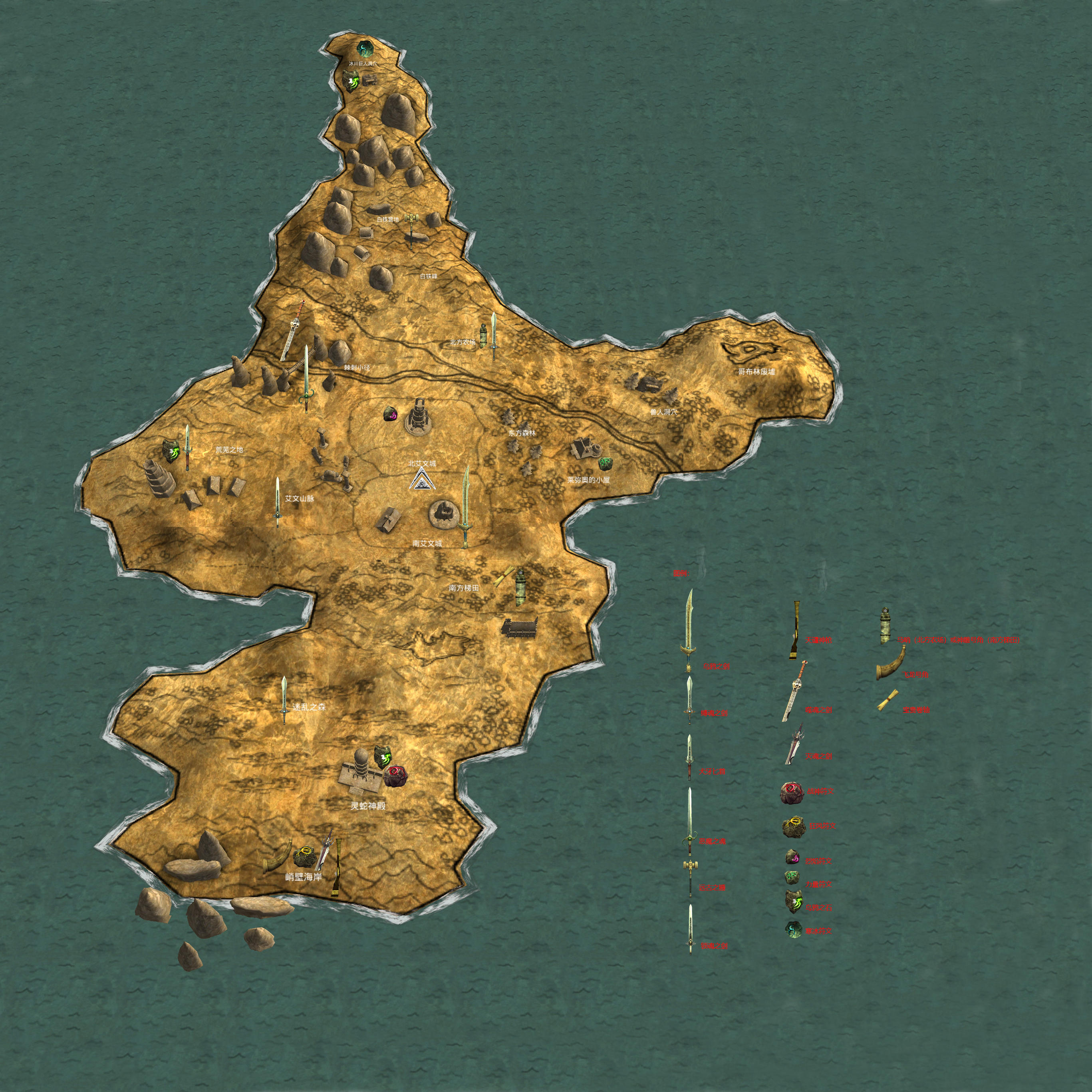 再回到北艾尔城,大法师定位到乌鸦之石在迷乱之森的神庙,可以去峭壁海岸寻其好友帮助,快速旅行到迷乱之森,贴进口右侧行走,路过一哥布林洞穴后便看见了通向海岸的入口,快步迈入,眼前是一改之前灰暗的色彩,所视之处真是一幅青山绿水的画卷,海岛空中盘旋着几只飞龙,我顺道前行便看见了大法师好友,没想到是个驯龙大师,给了飞龙号角说是考验一下我,需要我拿取5颗飞龙蛋回来,我有神雕自是不屑,来到海岛深处,隐约间好似有一洞口,神雕召回,奔洞内而去,却是一堆恶魔的仆人,在宝箱中刷到一把灭魂之剑(随机),在洞穴另一侧尽头的骨架里获得天谴神枪,飞龙蛋收集5枚后便向驯龙大师飞去,看我如此本领也是二话不说直接把飞龙号角、狂风符文和神庙钥匙全部给到。
