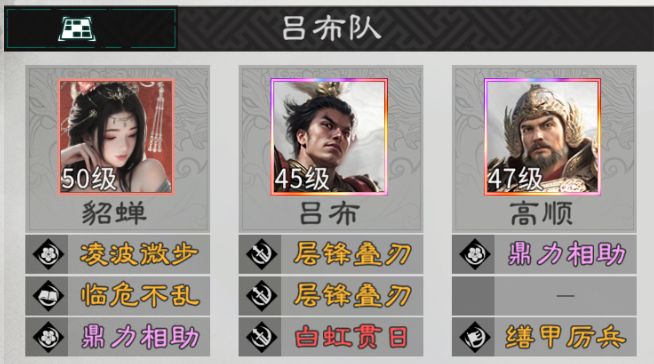 目前吕布、貂蝉、高顺的追击配队,最多6次的额外追击能让吕布快速充能,尽快发动觉醒技能。