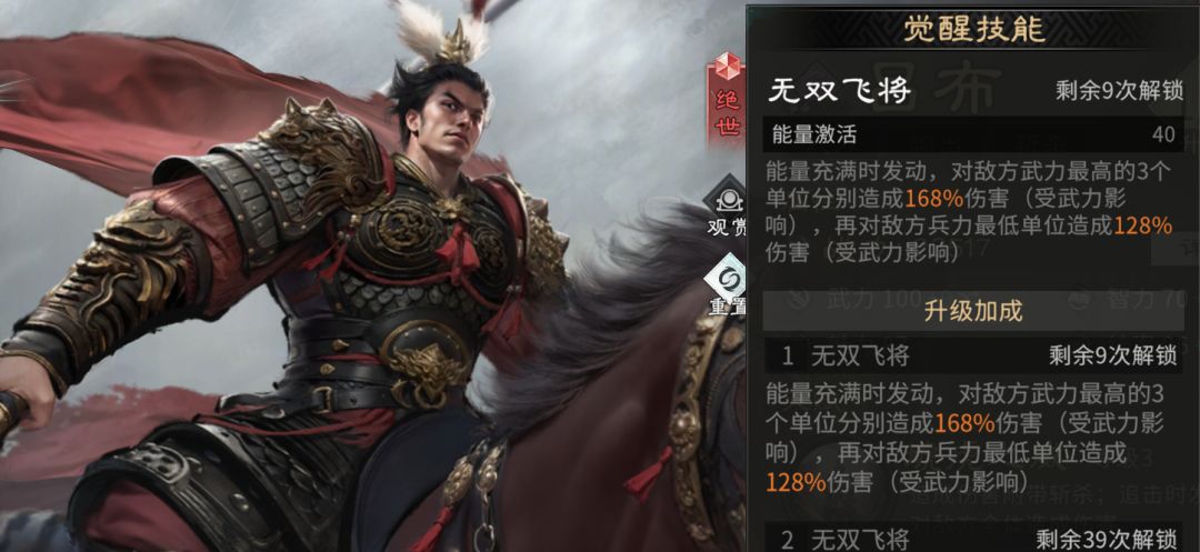 吕布的觉醒技能是一个强力的伤害技能: