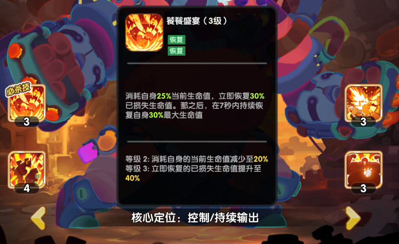 【必杀技】饕餮盛宴:消耗当前生命值恢复以损失生命值及最大生命值百分比