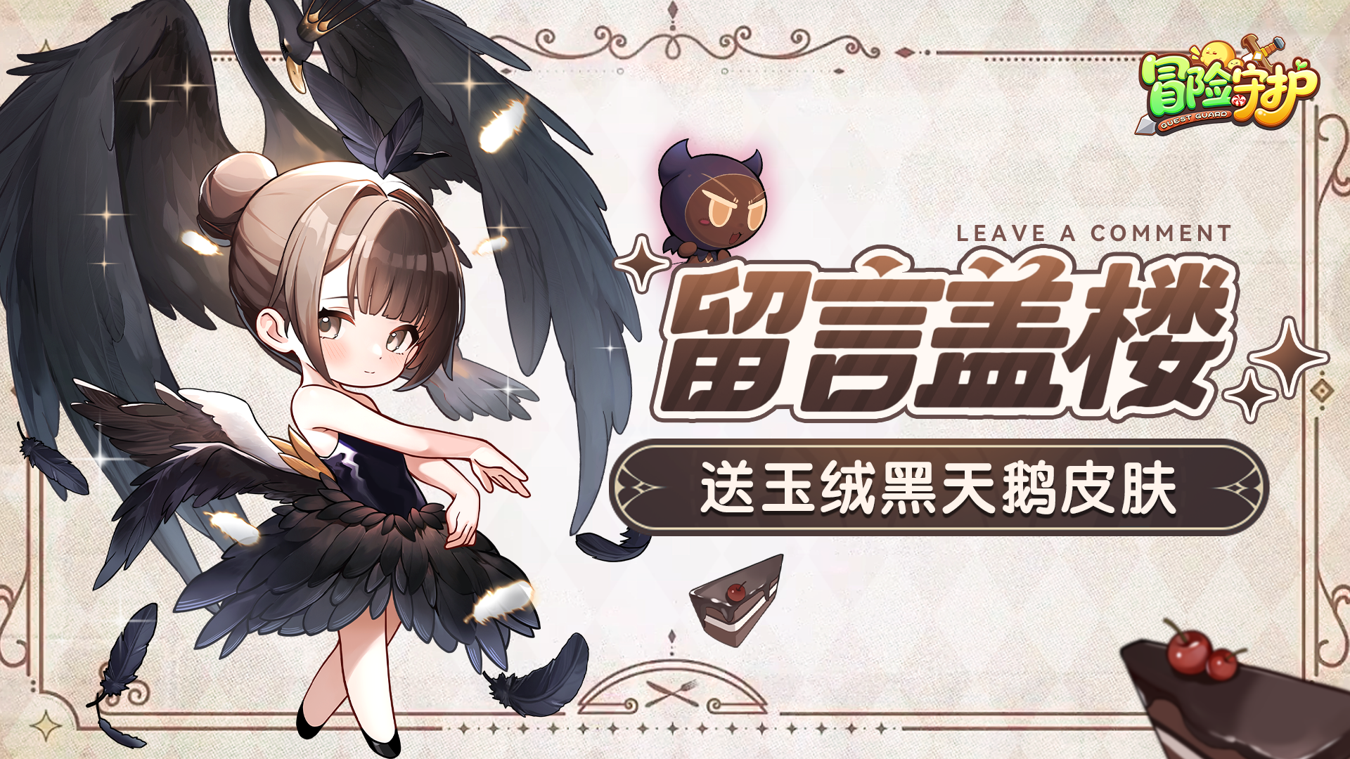 没错!为了回馈各位镇长大人一直以来的热爱与支持,我们特别准备了这款优雅的 「红丝绒蛋糕」限定时装·墨羽守护者送给大家~现在,只需参与简单的留言盖楼活动,就有机会把它免费带回家!
