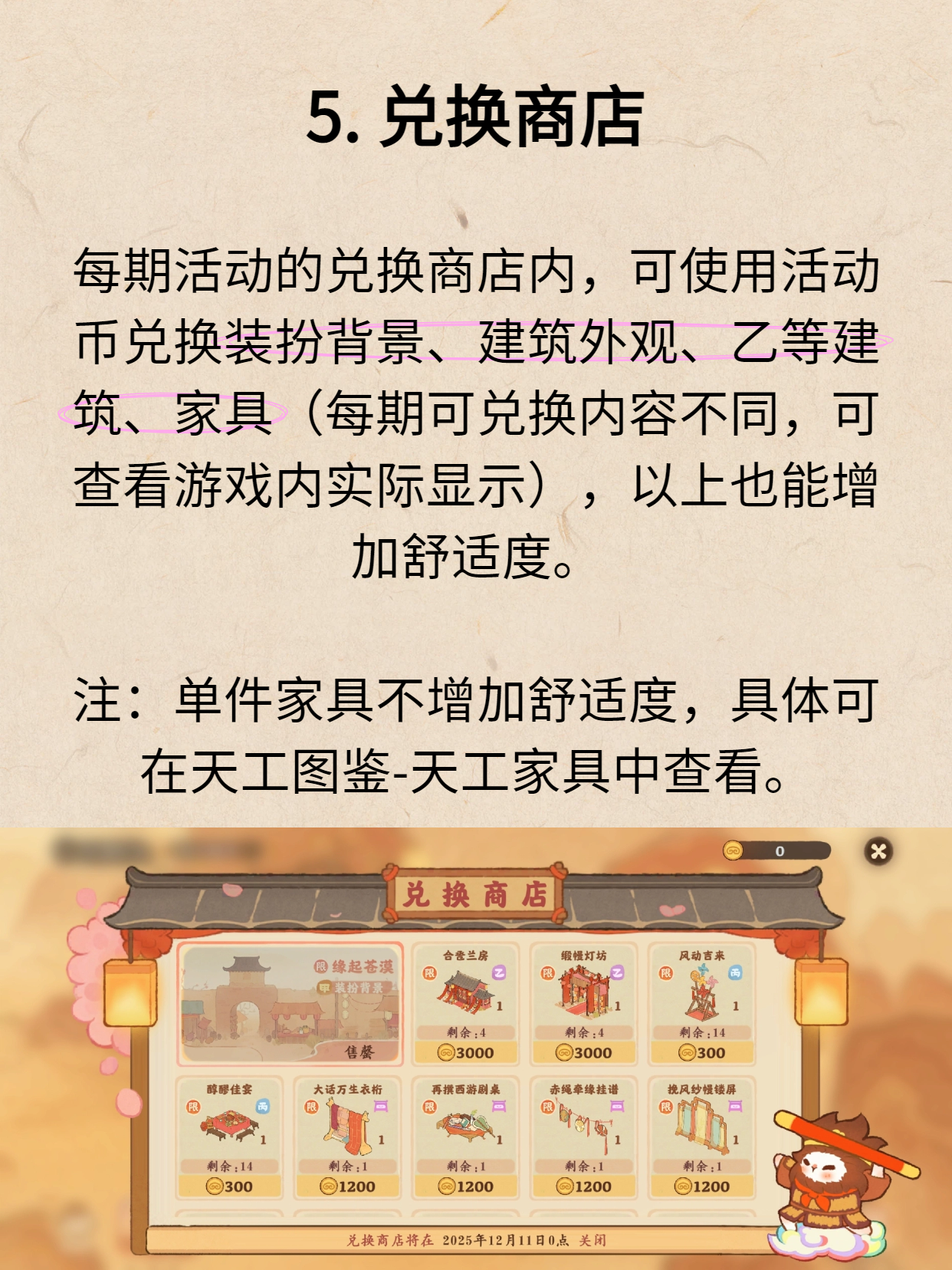 舒适度是衡量家园繁荣程度的核心指标。在游戏左上角的“家园信息”-“小结”中,每次达到舒适度目标后都可获得铜钱、念、回溯原石、玎当、卷轴等奖励。