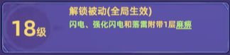 英灵等级提升至18级,局内可解锁【麻痹】被动技能选项。闪电、强化闪电和落雷都会附带1层麻痹,每层麻痹能使目标受到的雷电伤害提高1%,最多叠加20层。配合45级的被动,更可以使其配合多种体系队伍。