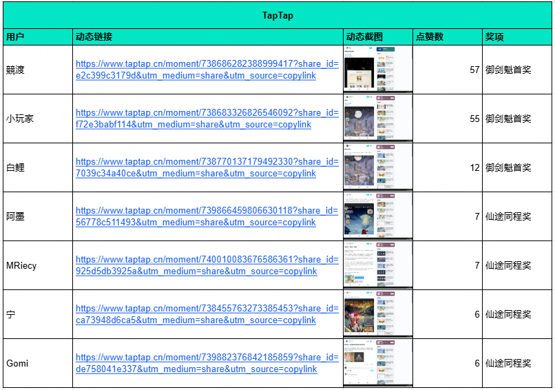 所示参与方式和获奖规则,特此公布符合条件的获奖道友名单如下