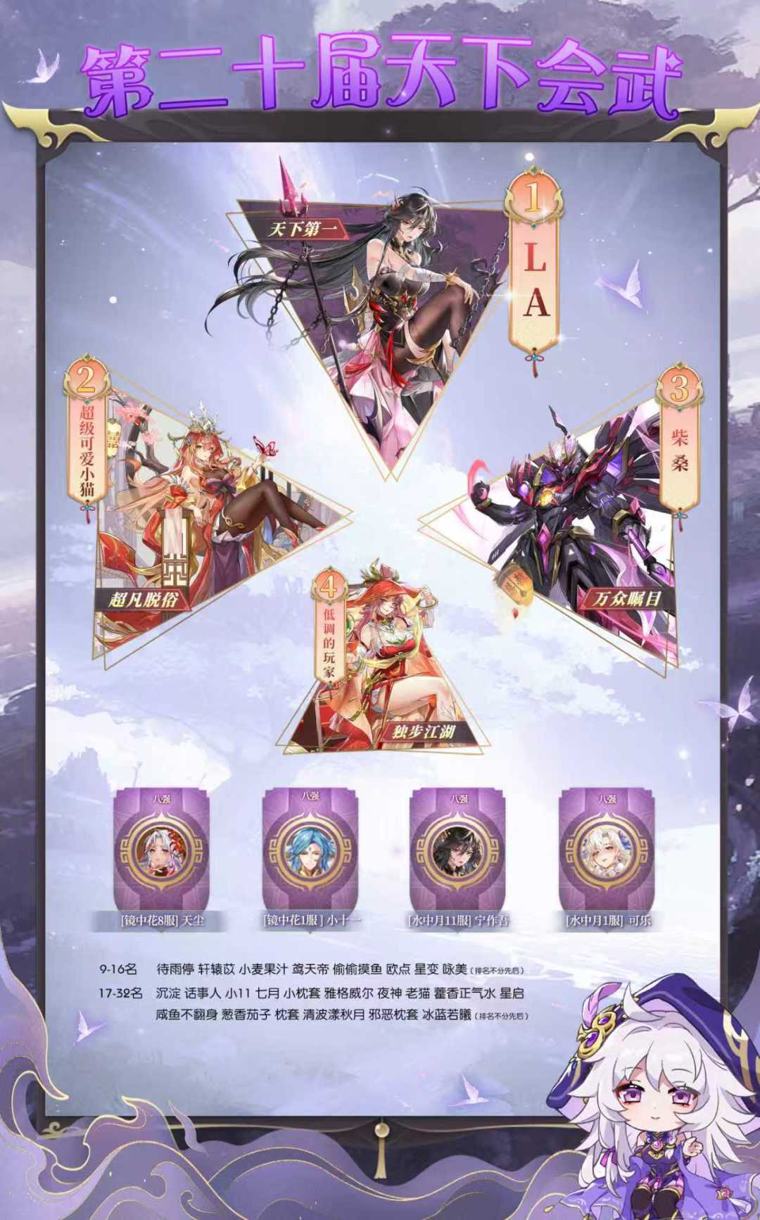 最后,八强战中天尘、小十一、宁作吾、可乐遗憾落败、止步八强,希望下期活动再接再厉,勇攀高峰~