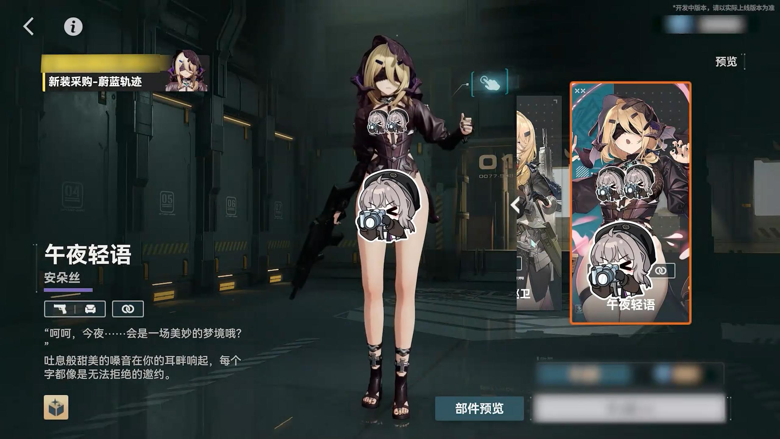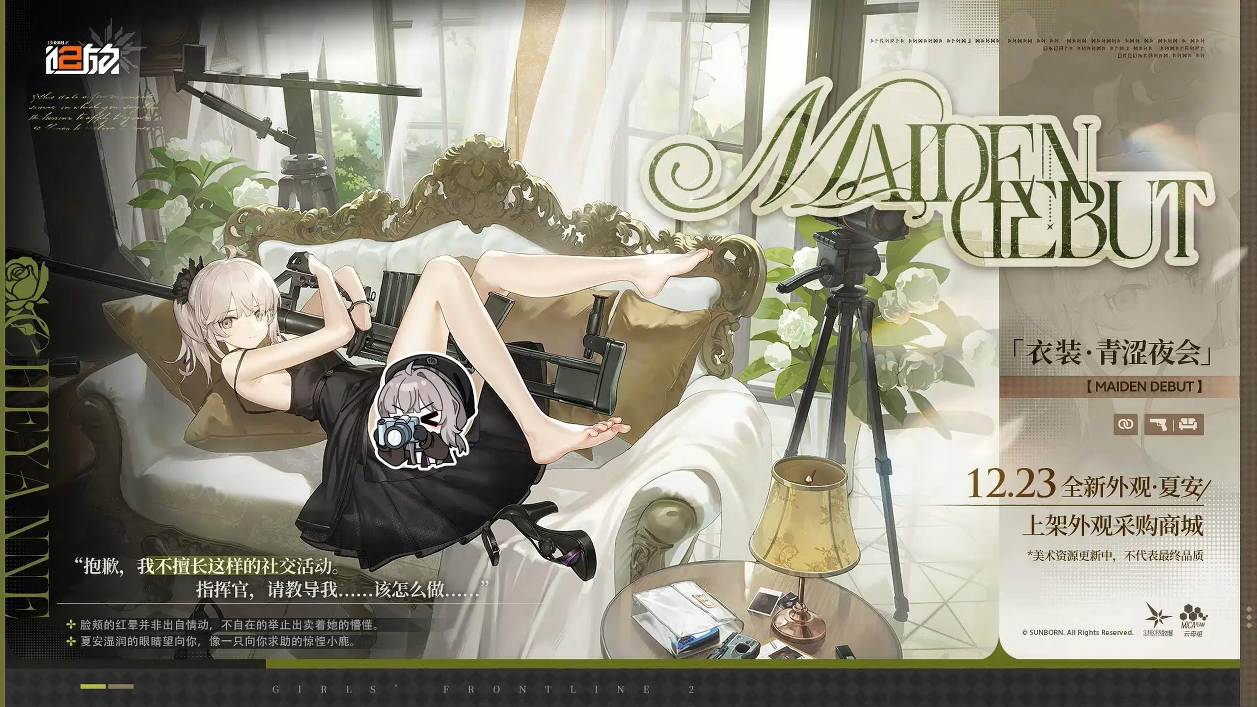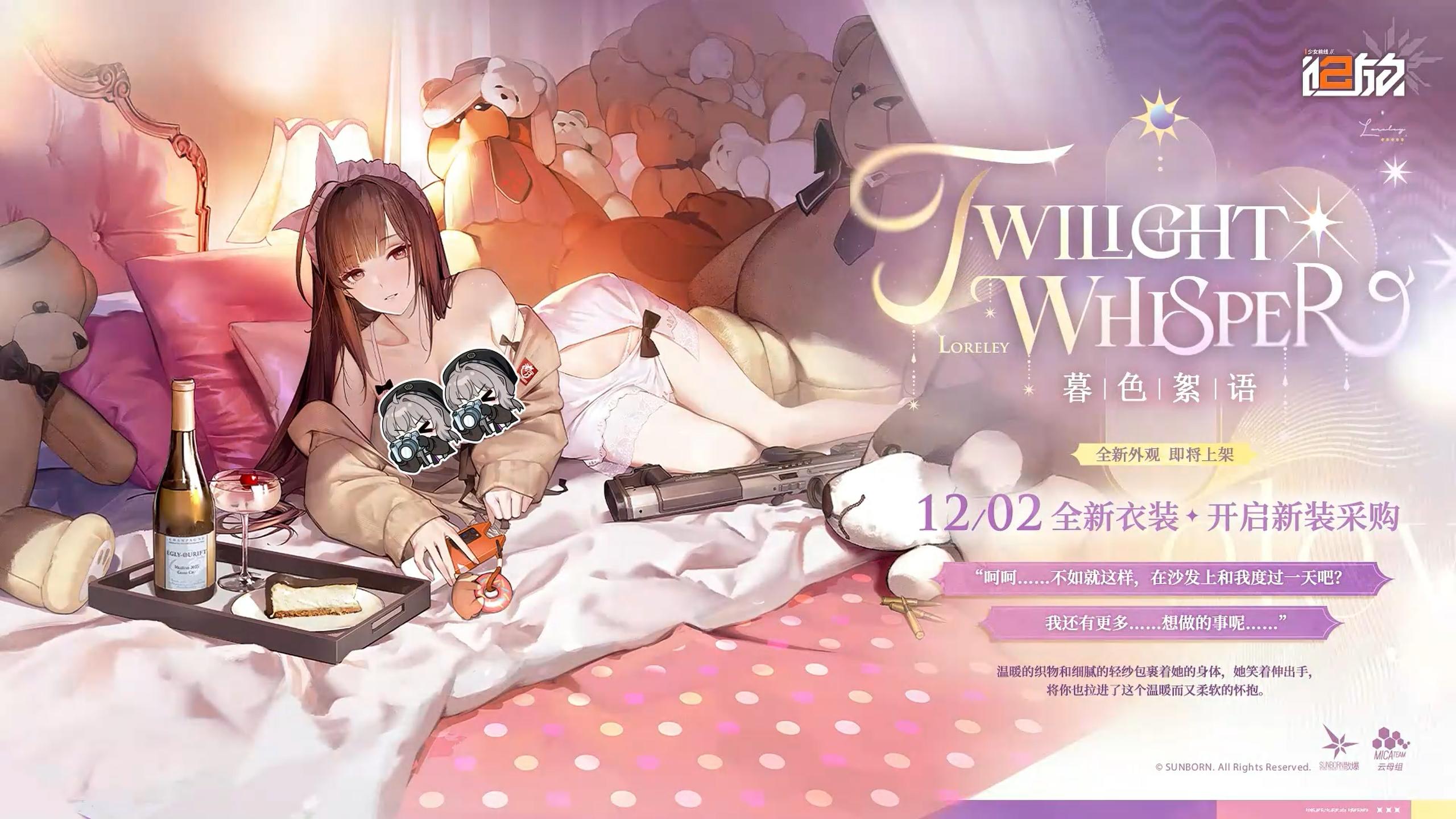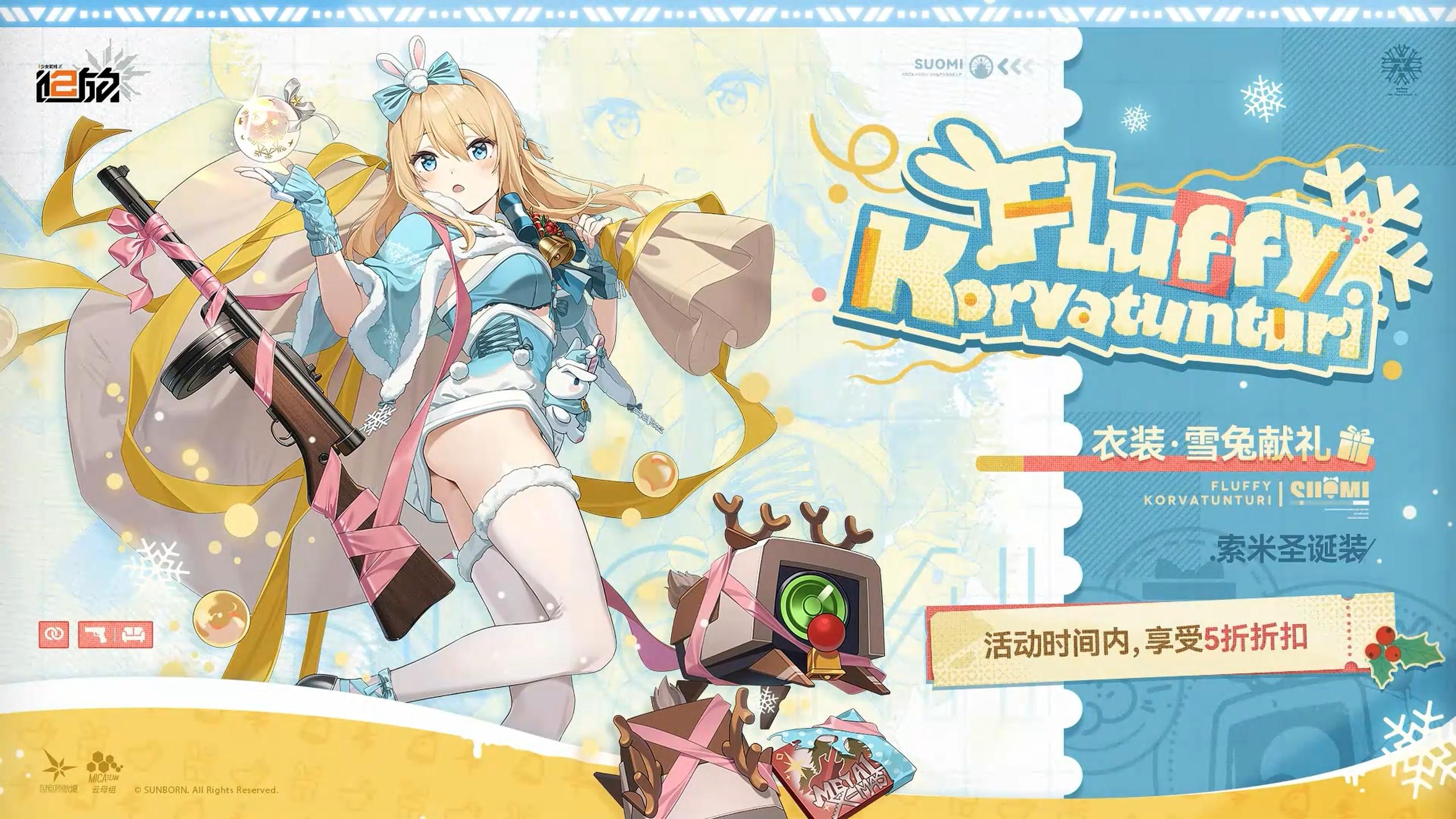 那么说完了新人形,自然就离不开新皮肤了。上半共有三个,妮基塔礼服皮、玛奇朵温泉皮、以及罗蕾莱的睡衣皮,索米也有新的圣诞皮,索米把自己当做圣诞礼物送给指挥官了,而且还是打5折送我!我将立刻买爆!我的建议是一转头把我砸晕到12月2号,还有部件更换,可以狠狠的换装。