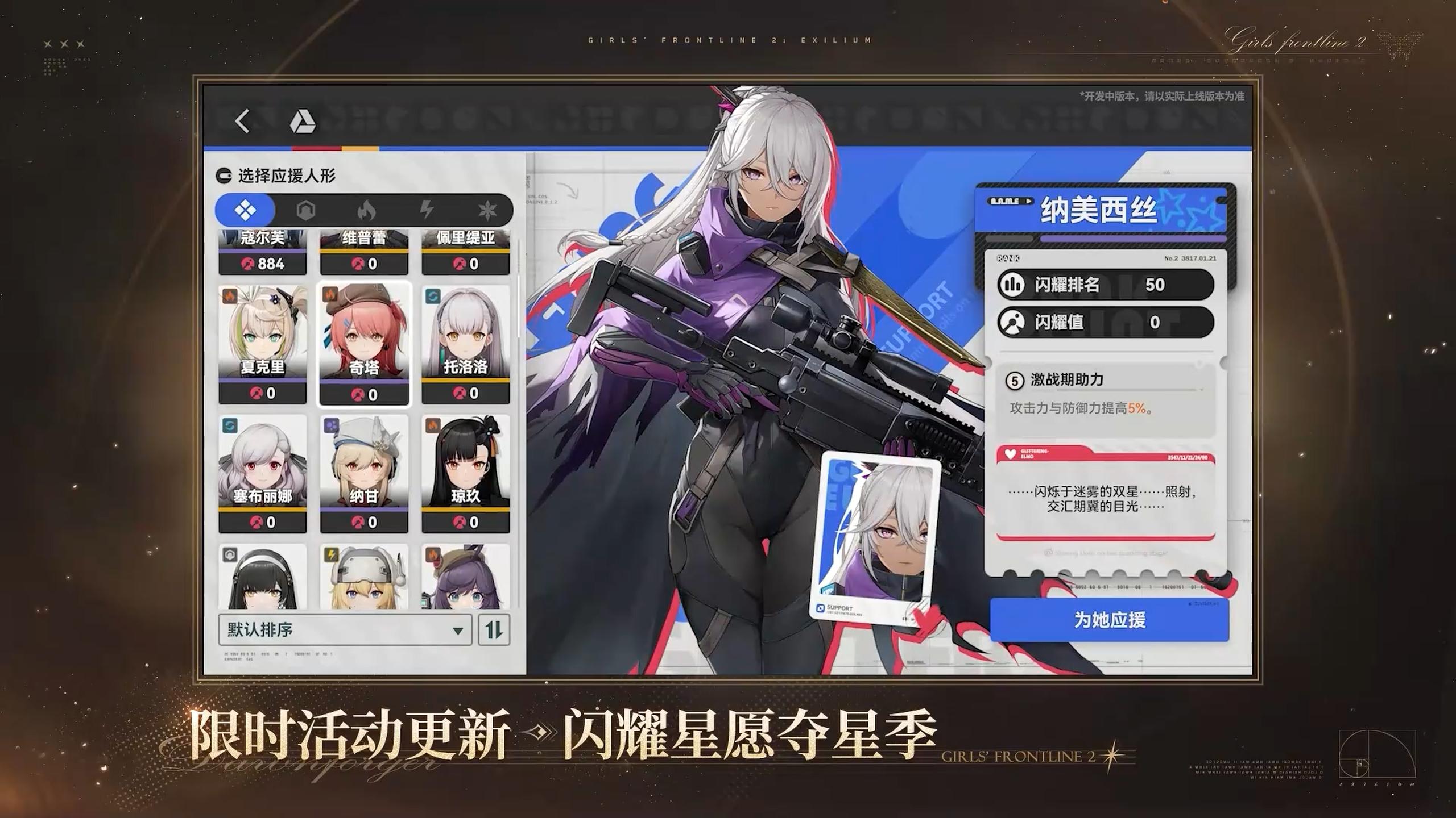 首先就是上半的新角色 罗蕾莱,定位是燃烧属性的狙击枪支援角色,这下火队王朝了,有一说一是真的好看啊,这下不管强度也得xp抽卡了。