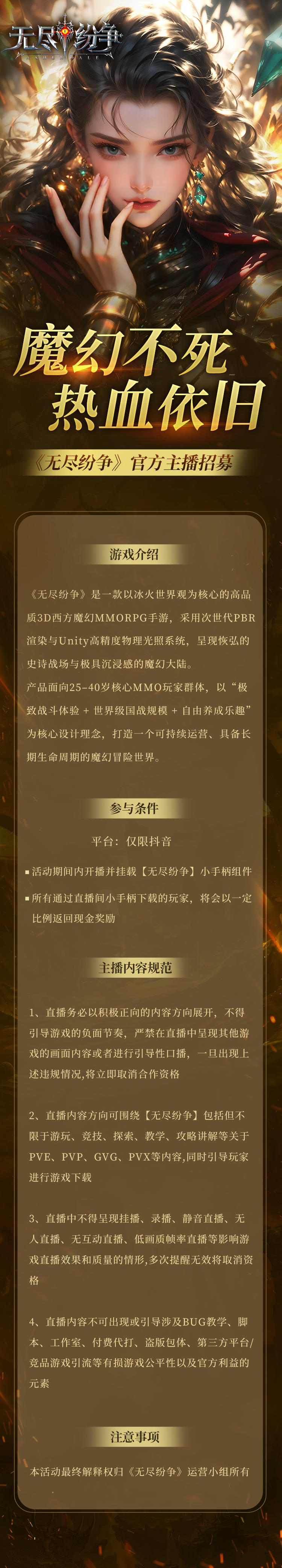 魔幻不死,热血依旧!《无尽纷争》官方主播招募令!