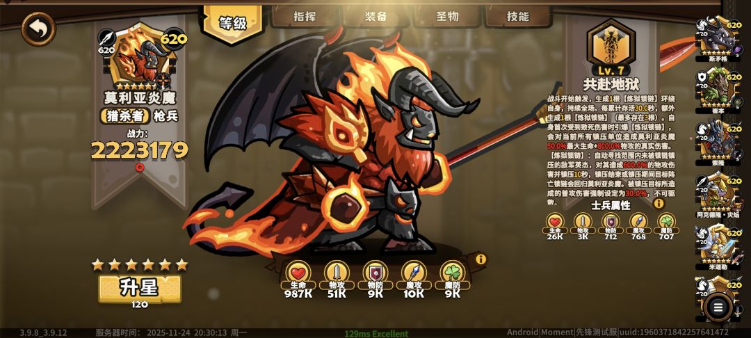 开局有1条锁链,每活半分钟加1条,场上最多存在3条锁链,炎魔阵亡同时引爆场上所有锁链,被套住的单位会受到炎魔自身一半血的血伤和600%物攻真伤,需要启动时间。